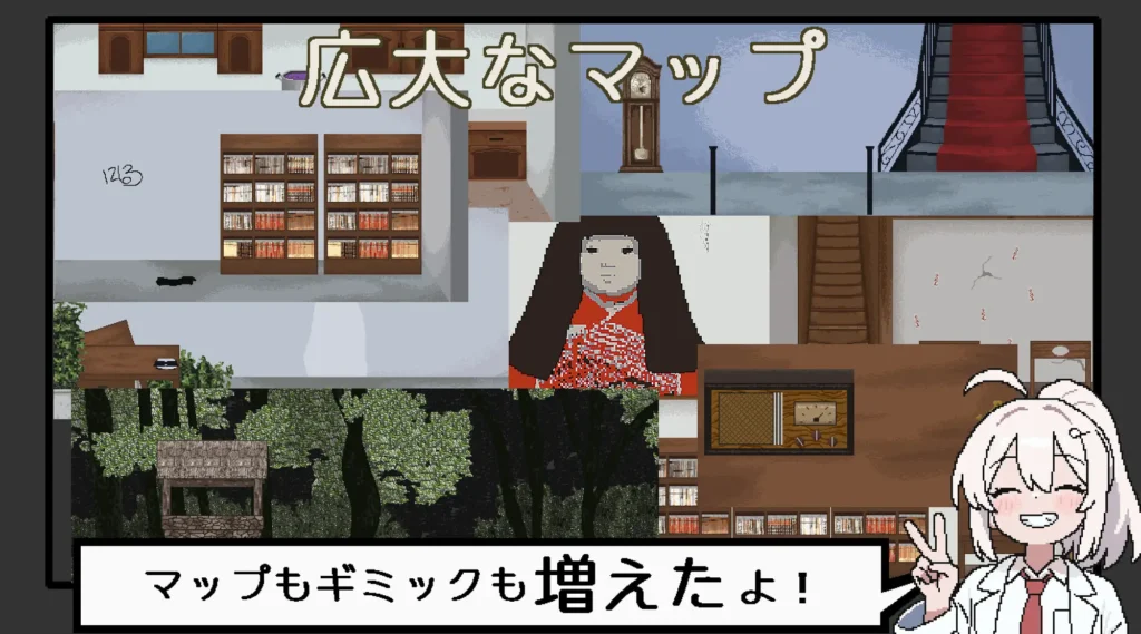 『悪夢屋敷・無限牢獄』は、悪夢に閉じ込められる恐怖と、多彩なシチュエーション、そして大量のドットアニメを武器にした探索ホラーRPGだ。